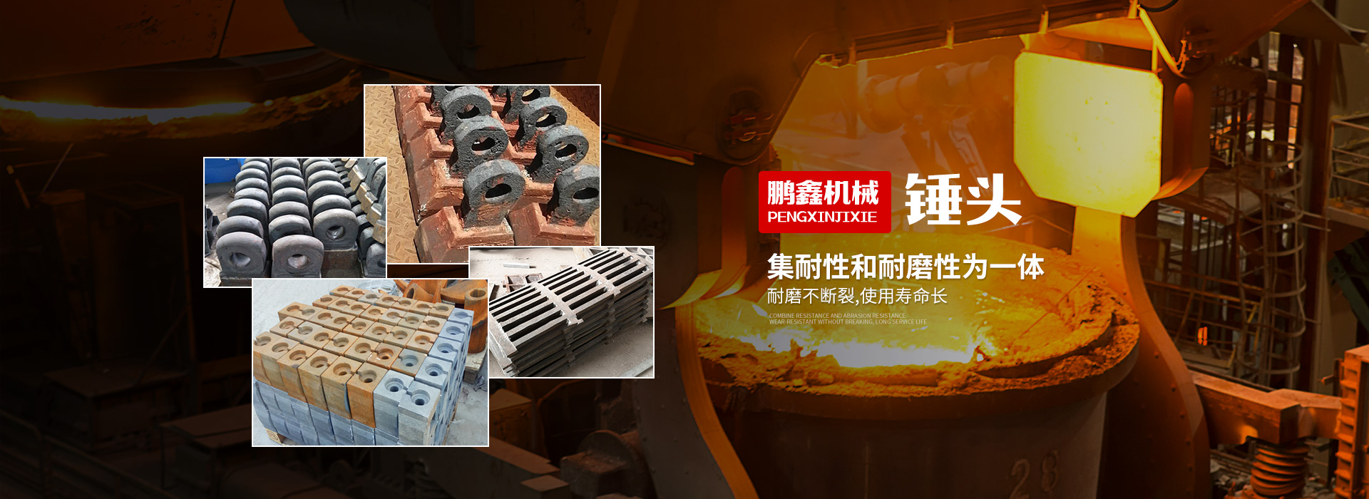 鞏義市鵬鑫鑄造有限公司主要生產(chǎn)制砂機(jī)錘頭、高鉻錘頭、高錳鋼錘頭、襯板、鄂板、鑄造板錘、高鉻板錘、破碎機(jī)板錘、反擊破板錘、球磨機(jī)襯板、顎式破碎機(jī)鄂板(牙板、齒板),邊護(hù)板(叉板)、肘板、對輥破碎機(jī)(雙輥破碎機(jī))輥皮、輥殼、雷蒙磨配件(磨輥磨環(huán))等礦山配件,還可根據(jù)客戶需要定制各種耐磨鑄件、鑄鋼件、灰鐵鑄件、生鐵鑄件,歡迎來電來函咨詢!